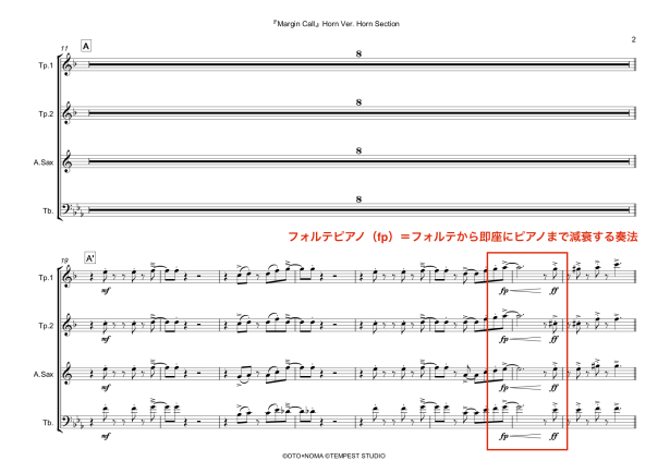 ホーンセクションでよく使われる表現のひとつとして、フォルテピアノ〜クレッシェンドというテクニックがあります。