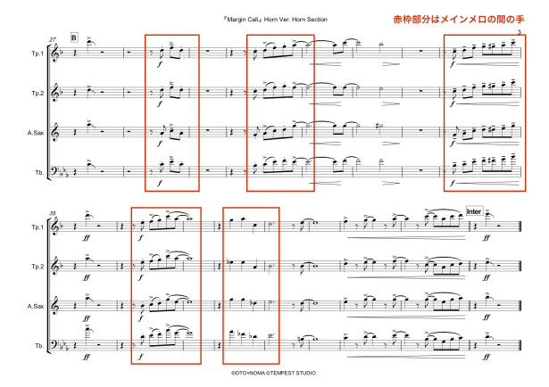 - 2nd Tp、Sax、Tbでボイシングする