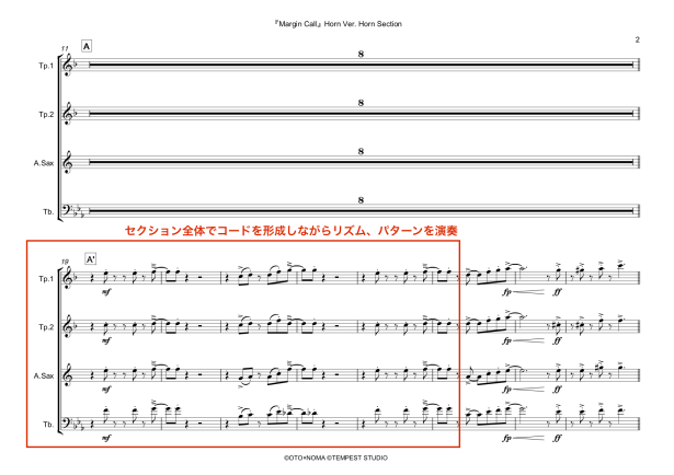 2. 2nd Tp、Sax、Tbでコードボイシングする