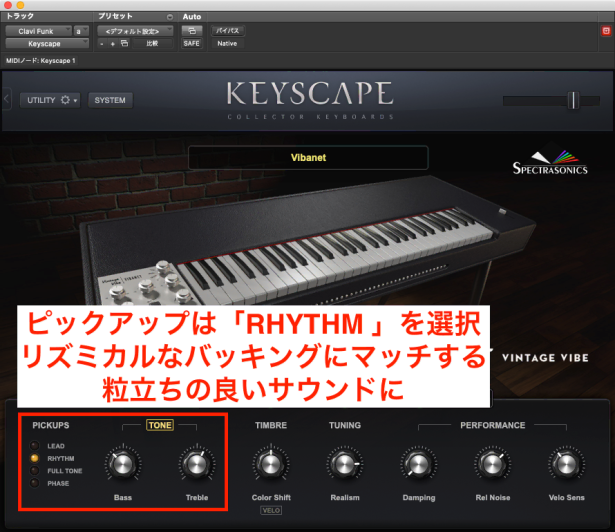クラビネットは、VINTAGE VIBE社のバイバネットを選択。