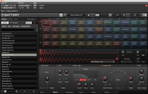 今回は、Native Instruments社「Battery」に収録されている「Sharp Shooter Kit」というプリセットを選んでみました。