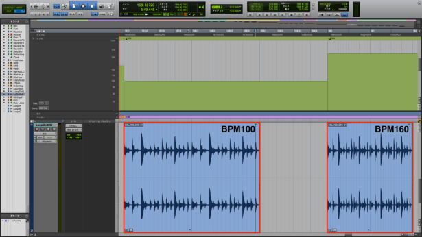 元のループはBPM100のもの。それをBPM160までアップさせています。