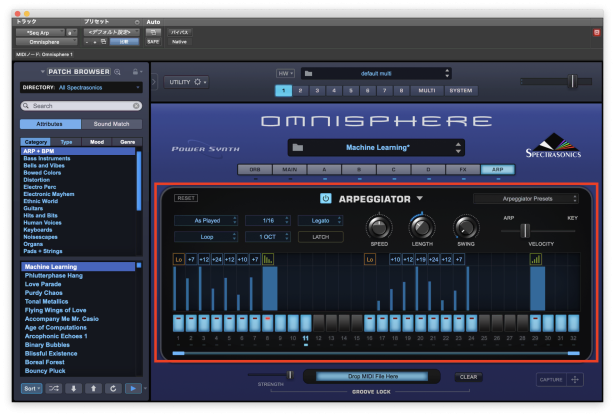音色が出来上がったら、アルペジエイターや手打ちなどでアルペジオの演奏パターンをプログラムしていきましょう。